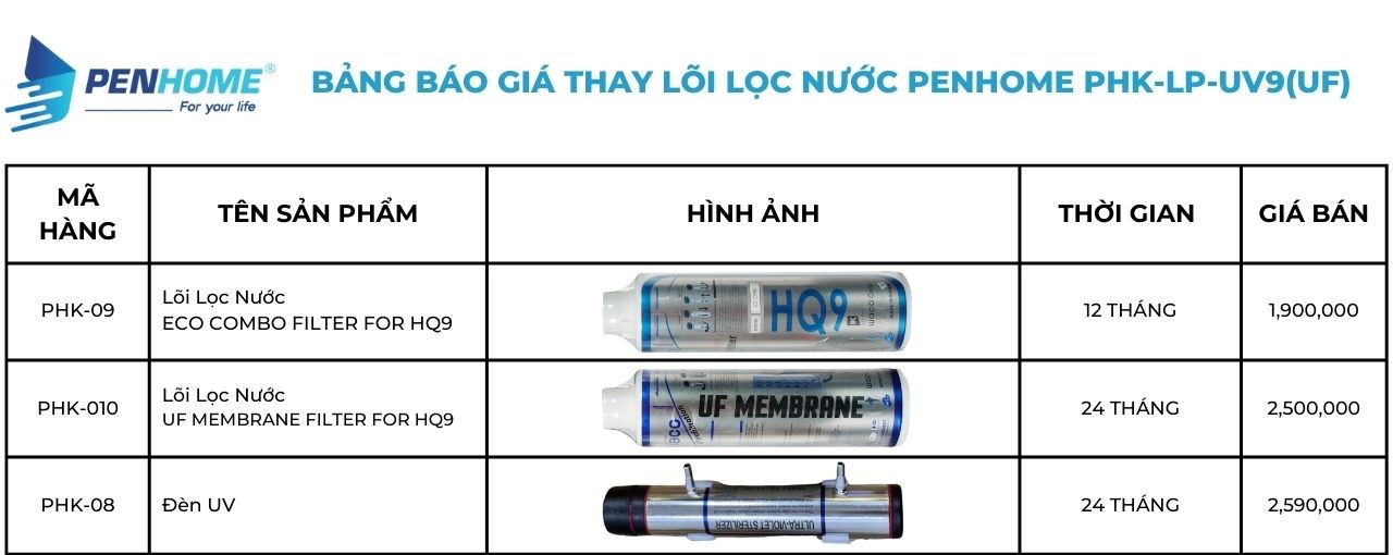 PENHOME PHK-LP-UV9(UF) sử dụng hệ thống 2 lõi lọc chính kết hợp đèn UV, tạo nên khả năng lọc vượt trội.